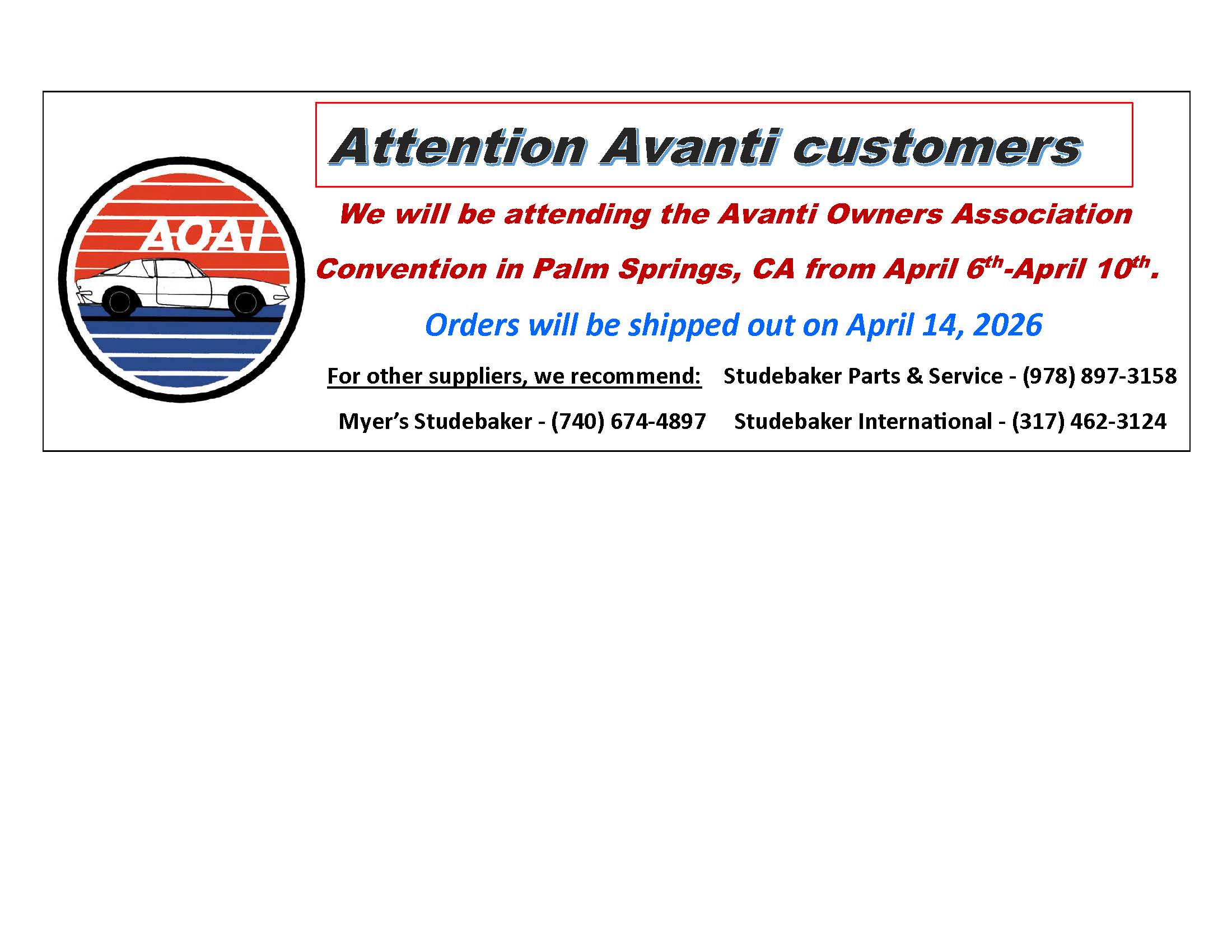 Your #1 Source of Studebaker and Avanti Parts!